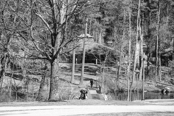 Students cross a bridge as they head toward the library and classroom buildings on the wooded campus of Bard College at Simon’s Rock in Great Barrington, Mass. Scott Langley photo