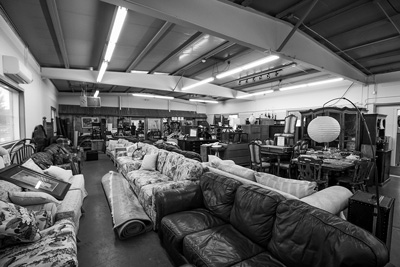 The ReStore’s main showroom is filled with donations of used furniture. Sales of the furniture and other items benefit the local Habitat for Humanity chapter to build homes for families who aren’t eligible for traditional home mortgages.