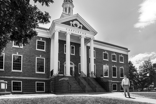 James Lambert, the associate dean of institutional advancement at Castleton University, stands outside the Woodruff Hall on the university campus in Castleton, Vt. photo by Joan K. Lentini