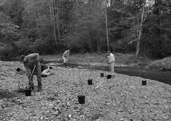 A team of volunteers planted trees last October in one of a series of projects aimed at stabilizing stream banks along the Batten Kill and its tributaries in eastern New York and Vermont. Courtesy photo